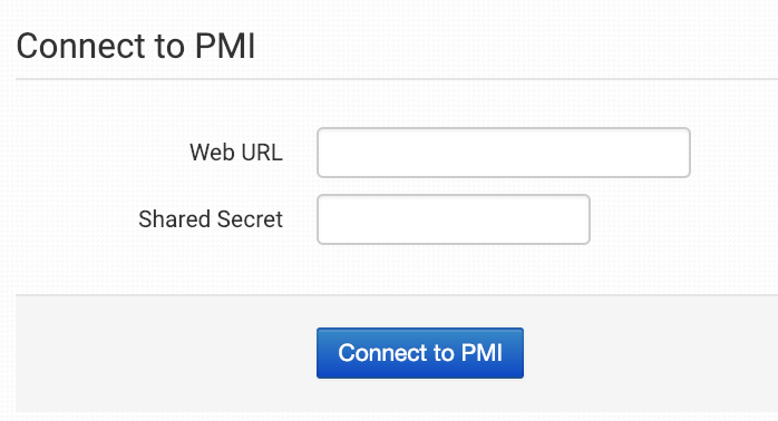 Enter your Website URL and Shared Secret from PMI and click to connect.