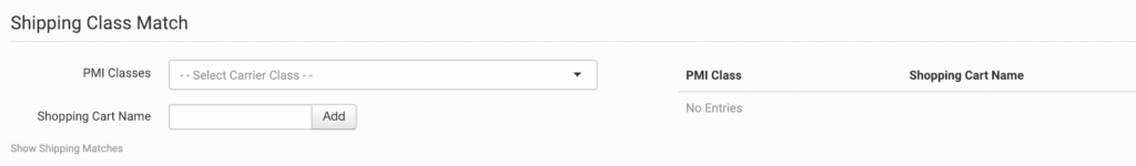 To tell PMI what methods you want them to use, you will need to match your method names to theirs. This can be done in the shipping class match section. For detailed instructions on setting this up, please read through the shipping class match guide.