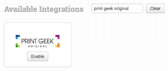 Alternatively, search for Print Geek Original from the available integration search.