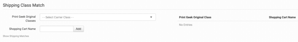 To tell Print Geek Original what methods you want them to use, you will need to match your method names to theirs. This can be done in the shipping class match section. For detailed instructions on setting this up, please read through the shipping class match guide.