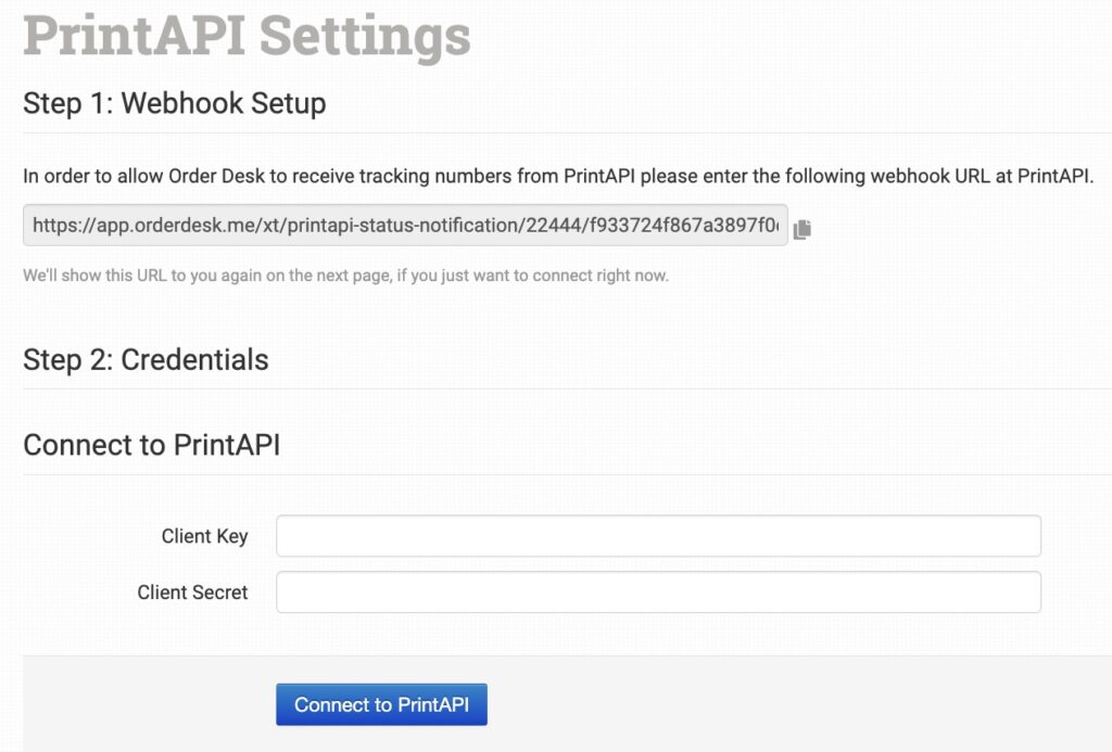 Please note that Order Desk isn’t able to help find or reset your credentials, as they can only be provided by PrintAPI.