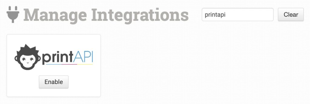 Alternatively, search for PrintAPI from the available integrations search.