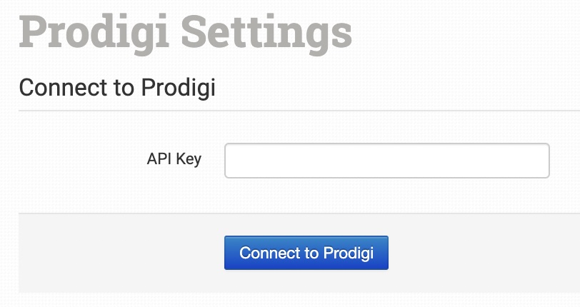 On the Prodigi setup page, enter the API Key provided to you by Prodigi.
