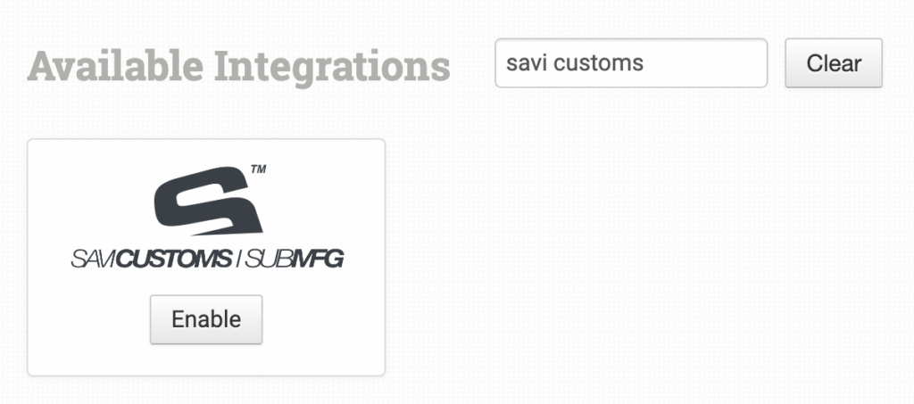 Alternatively, search for Savi Customs from the available integrations search.