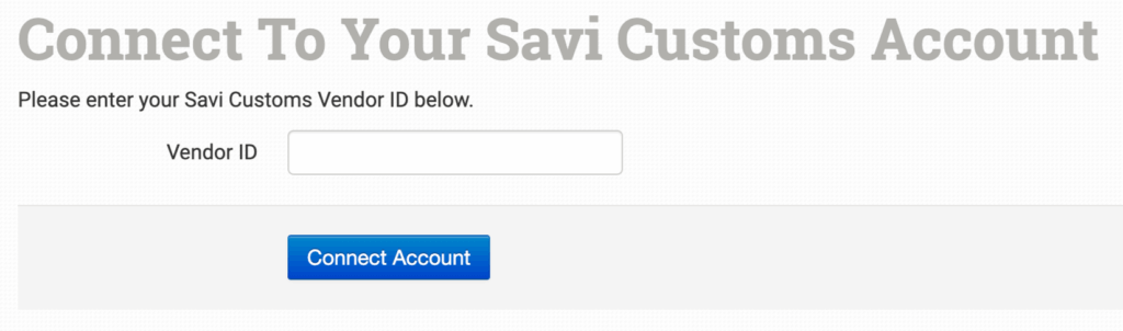 Enter your Savi Customs Vendor ID, then click to connect: