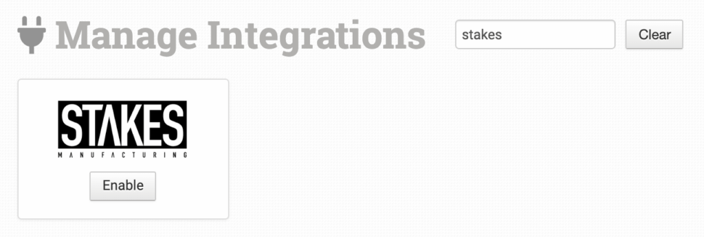 Alternatively, search for Stakes MFG from the available integrations.