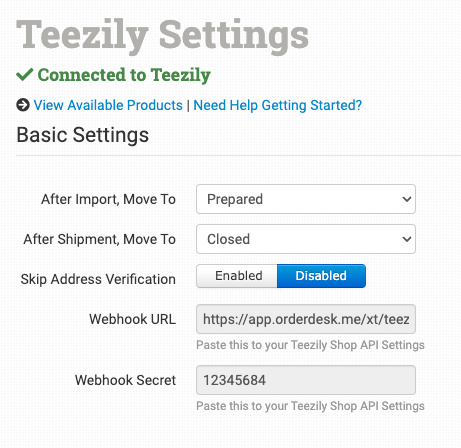 Getting your orders ready to send to Teezily will take some set up time. For a detailed walkthrough of how to use Order Desk with your Print on Demand orders, please read through our Print on Demand Fulfillment guide.