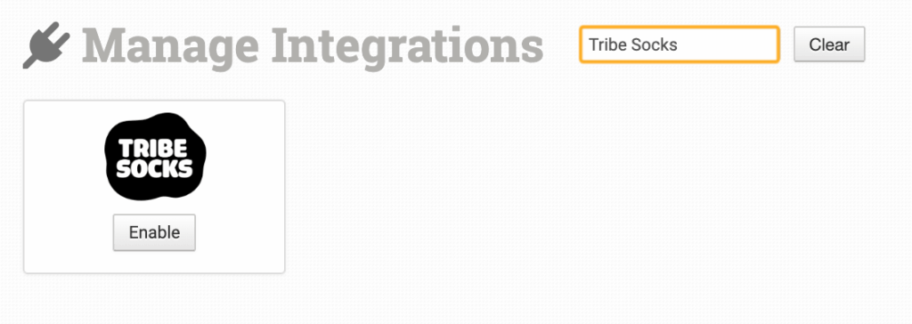 Alternatively, search for Tribe Socks from the available integration search: