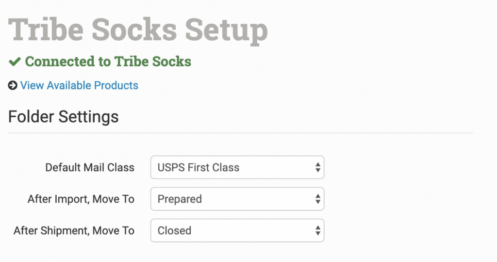 Select the folder you want orders to be moved into after they are sent to Tribe Socks.