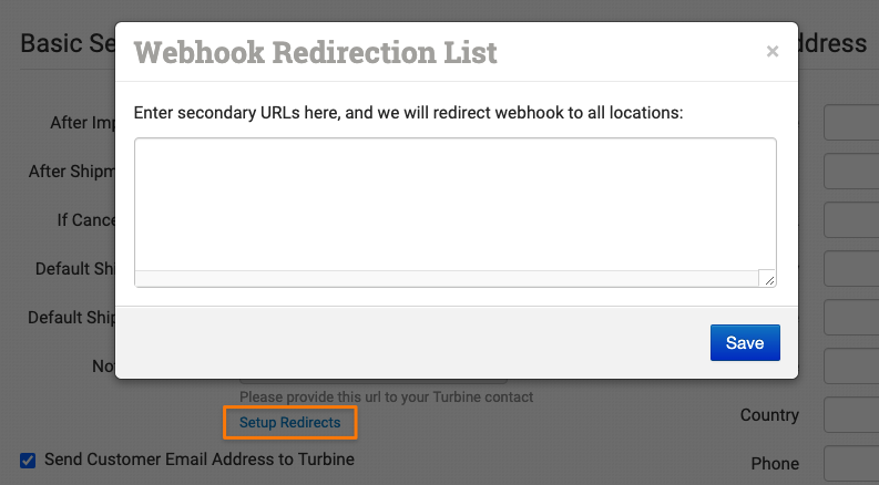 Give this notification URL to your Turbine contact and ask them to send shipment notifications to it. This is how they will connect back to Order Desk to send tracking details as they ship your orders.