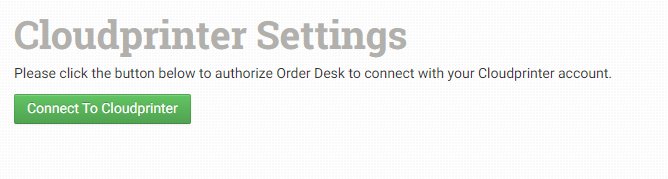 Click the Connect to Cloudprinter button to be redirected to Cloudprinter in order to grant Order Desk access to your account.