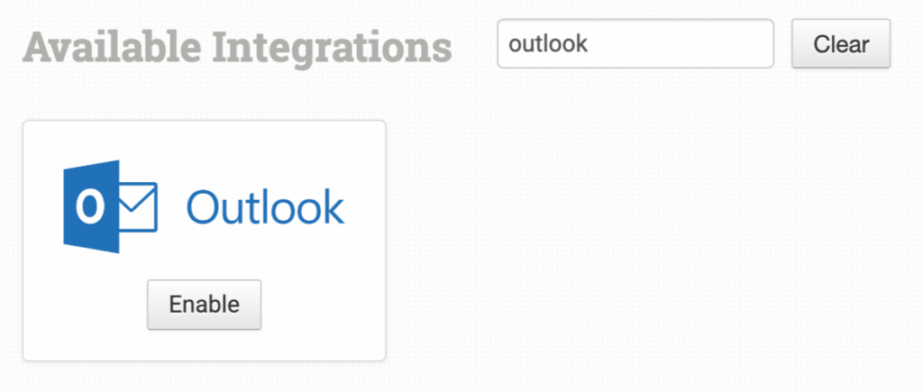 Alternatively, search for Outlook from the available integration search.