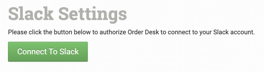 Click the green Connect to Slack button, and follow the prompts to add to Order Desk to your Slack account.