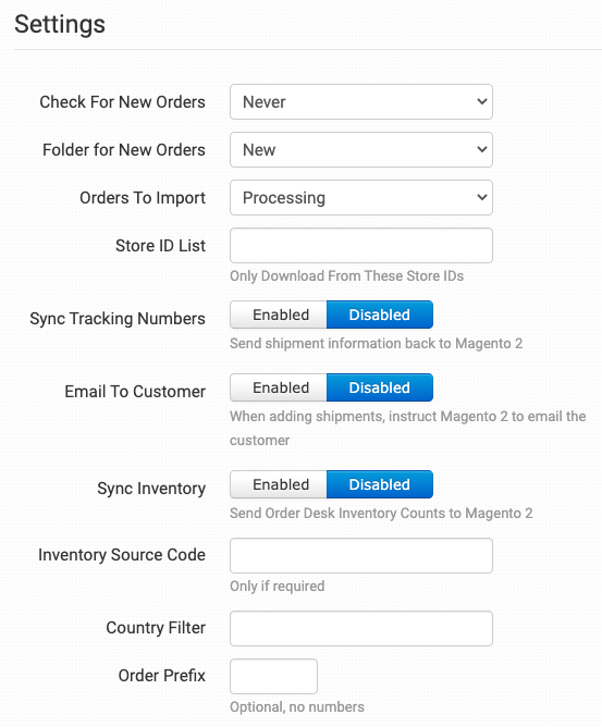 Enable to have your inventory counts sent to Magento as they are updated in Order Desk.
