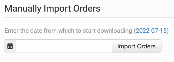 If you would rather manually import orders, you can do so by setting the earliest date for orders to import from and clicking the Import Orders button.