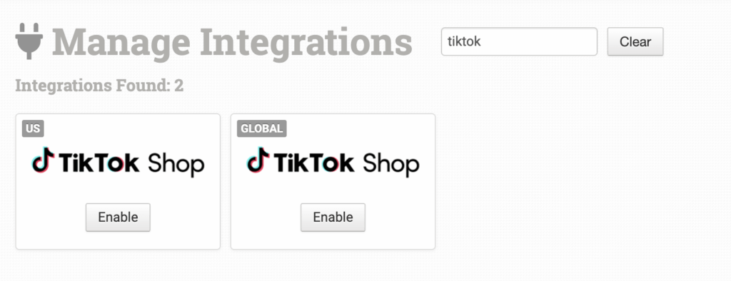 In Order Desk, click on Manage Integrations under the Integrations menu in the left sidebar. Under the Shopping Carts tab, find and enable TikTok Shop.