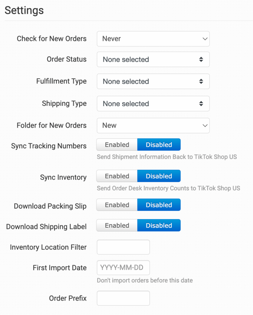If you’d like to add a unique order prefix to the order numbers that come in from TikTok Shop, set that here.