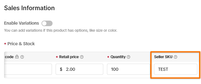 We are only able to download products that have a Seller SKU set up in your TikTok Seller Center. You can check for a Seller SKU from within TikTok Seller Center: