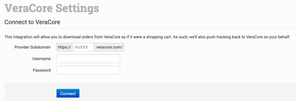 Enter your VeraCore credentials, then click the Connect button.