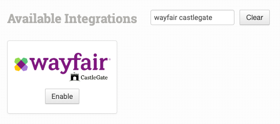 Alternatively, search for Wayfair Castlegate from the available integration search.