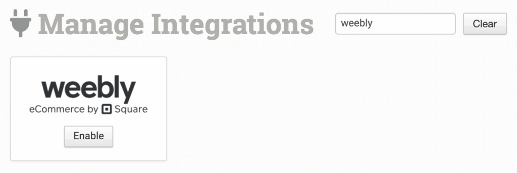 To begin, click on Manage Integrations from the left sidebar in Order Desk. Under the Shopping Carts tab, find and click to enable Weebly.