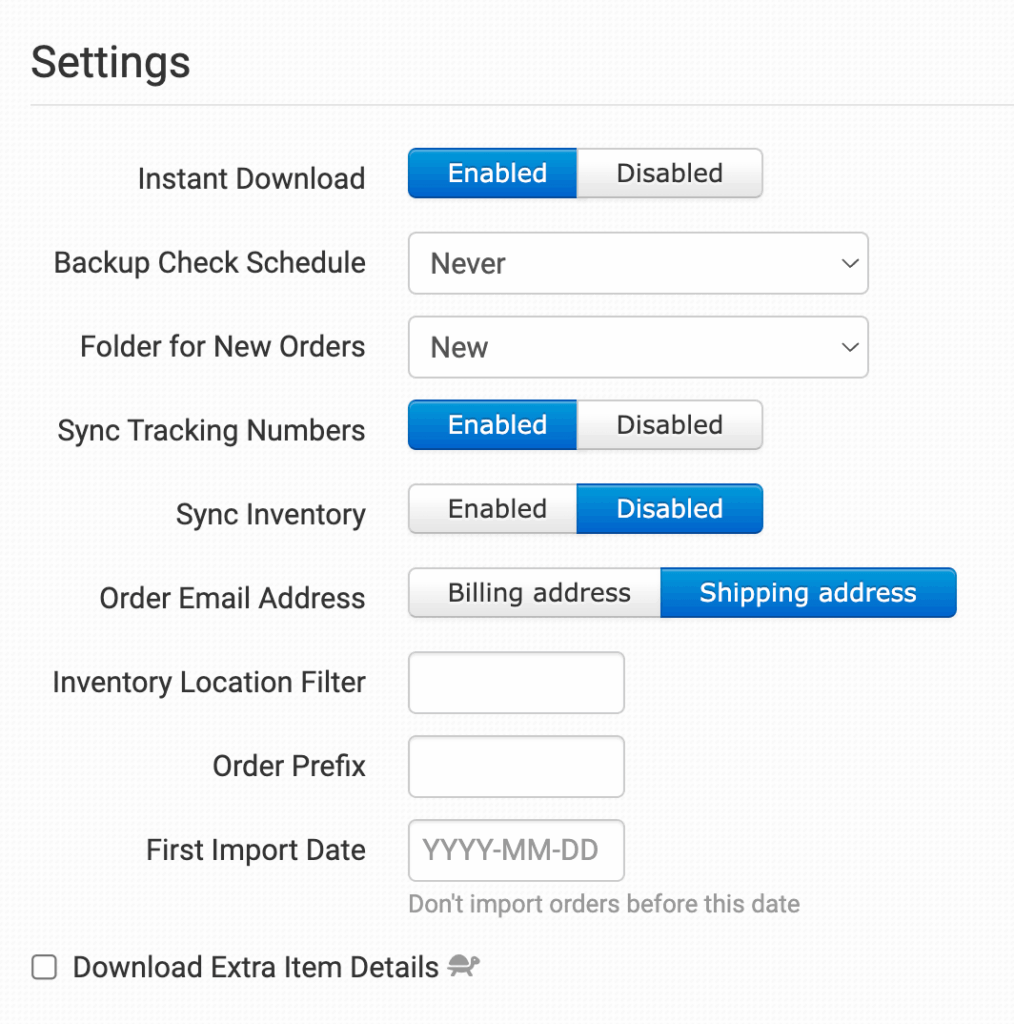 If you only want to download specific orders, you can use the Inventory Location Filter field to specify which ones you want. Enter multiple locations separated by a comma.