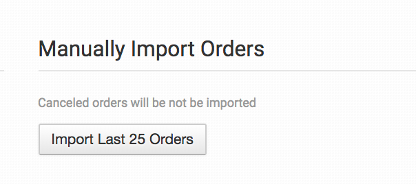 If you would rather manually import orders, you can do so by clicking the Import Last 25 Orders button.