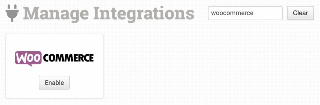 In Order Desk, click on Manage Integrations under the Integrations menu in the left sidebar. Under the Shopping Carts tab, find and enable WooCommerce.