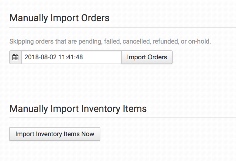 If you need to manually import orders or inventory items from WooCommerce, you can do this from the WooCommerce integration page.
