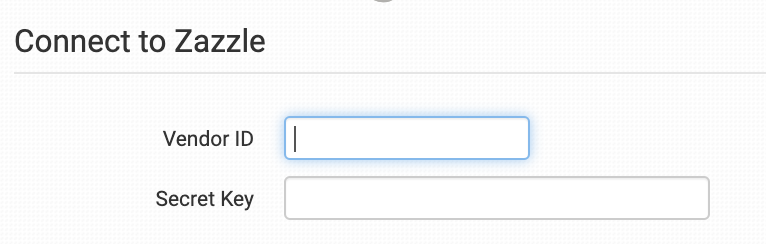 Once enabled, enter your Zazzle Vendor ID and Secret Key and click to connect.