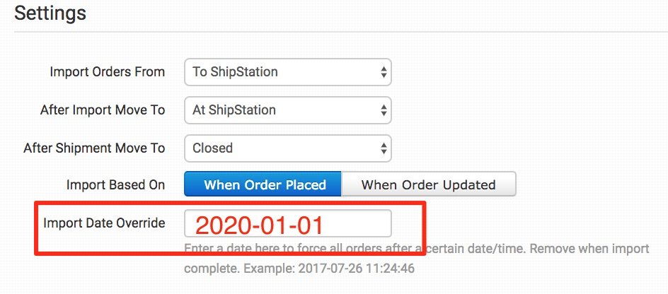 By putting in this future date, you will be preventing ShipStation from downloading any more orders, but it will allow you to keep the integration enabled until all of the orders already there have shipped and had their shipment details sent back to Order Desk.