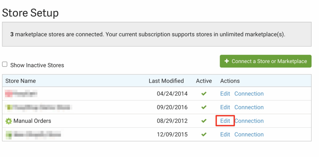 Find the store that is connected to Order Desk and click on Edit: