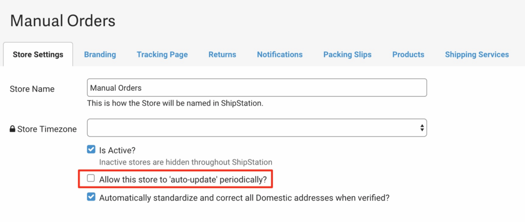 Make sure that the Allow this store to ‘auto-update’ periodically? setting is disabled to prevent ShipStation from pulling in any more orders from Order Desk: