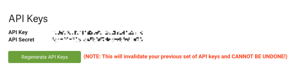 If you haven’t already, click on the green Generate New API Keys button: