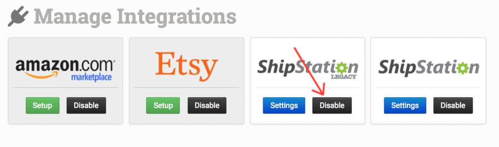 Click on Disable for the ShipStation Legacy integration:
