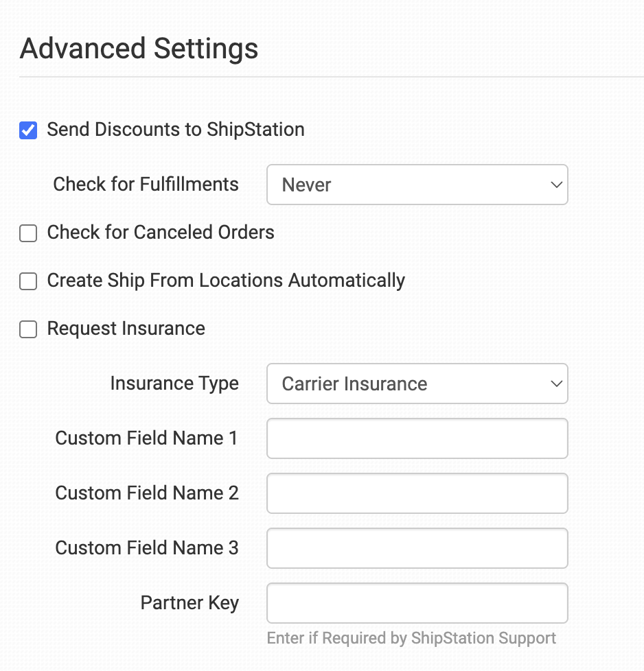 By default, all discounts will be sent to ShipStation as adjustment line items. If you do not want discounts to be sent to ShipStation, uncheck the Send Discounts to ShipStation option. Discounts must be over $0.01 to be sent.