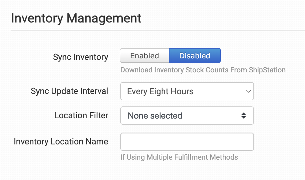 Enable if you want your inventory stock counts to be pulled in from ShipStation.