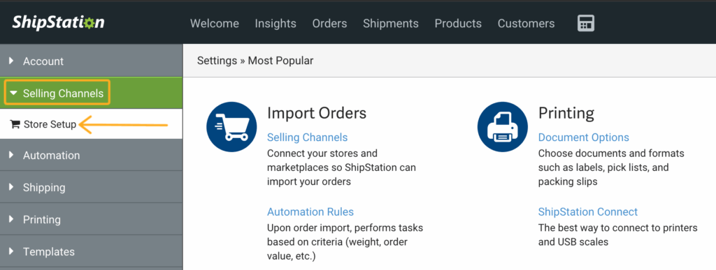 For information about the ShipStation integration settings and features available once connected, please refer to the ShipStation guide.