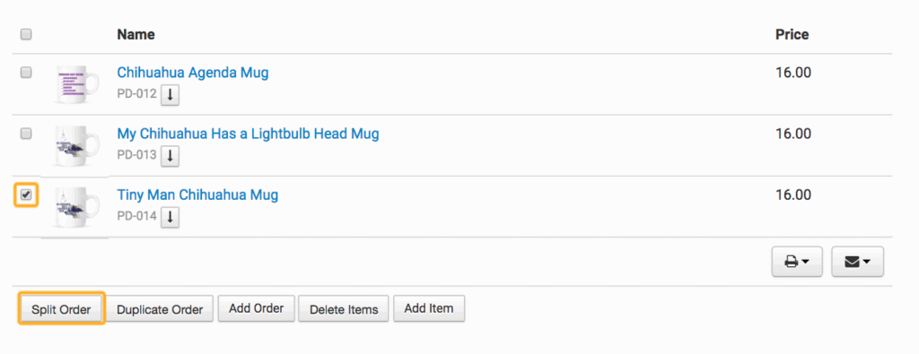 To split one or more items out of an order, select the items that need to be fulfilled again and click on Split Order: