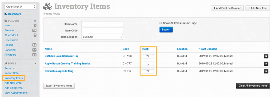 Do this by clicking on Inventory Items in the left sidebar. Manually add the accurate stock back to the necessary items: