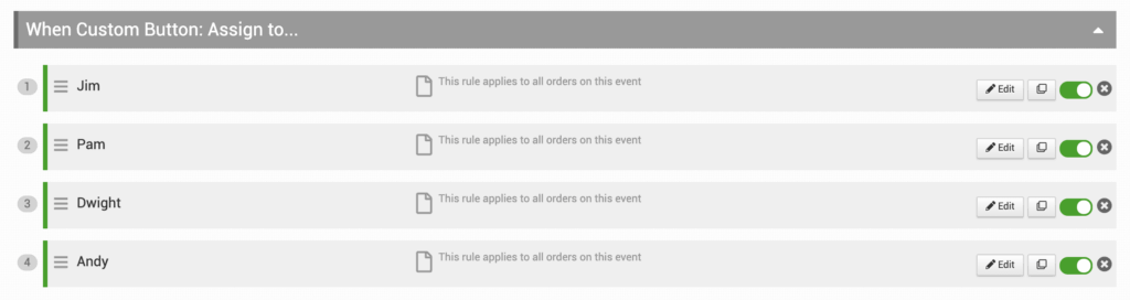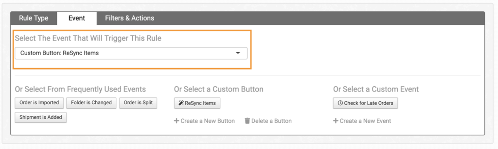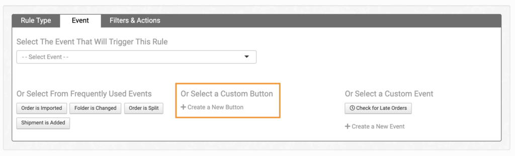 Custom buttons can be created to run a rule when the button is clicked for an order or a group of orders.