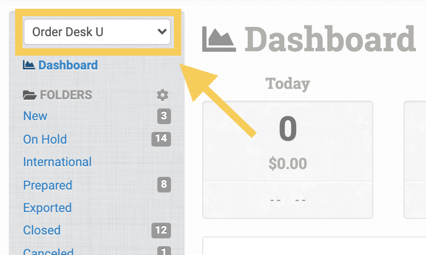 This will allow you to switch over to any Order Desk store associated with your email address, so if you’re not in the store that you intended to view then you’ll be able to easily change over to the correct one. And if it turns out that you have multiple stores with the same name and this was not intentional, go ahead and contact our support team so we can remove the duplicate for you.