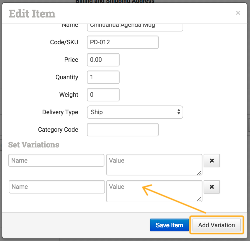 Click Add Variation twice so you can add two variations to the item.