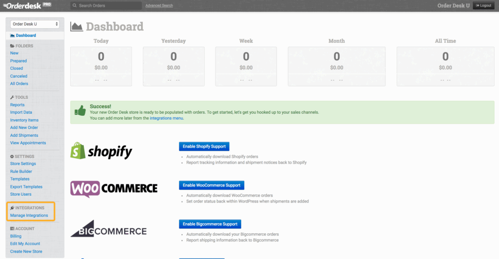 Order Desk offers integrations with many other apps, websites and services. An integration isn’t necessary for using Order Desk, but it does make setup and fulfillment quite a bit easier. If you use any of our integrations, enable these first and adjust the settings of each one to your preferences.IMPORTANT