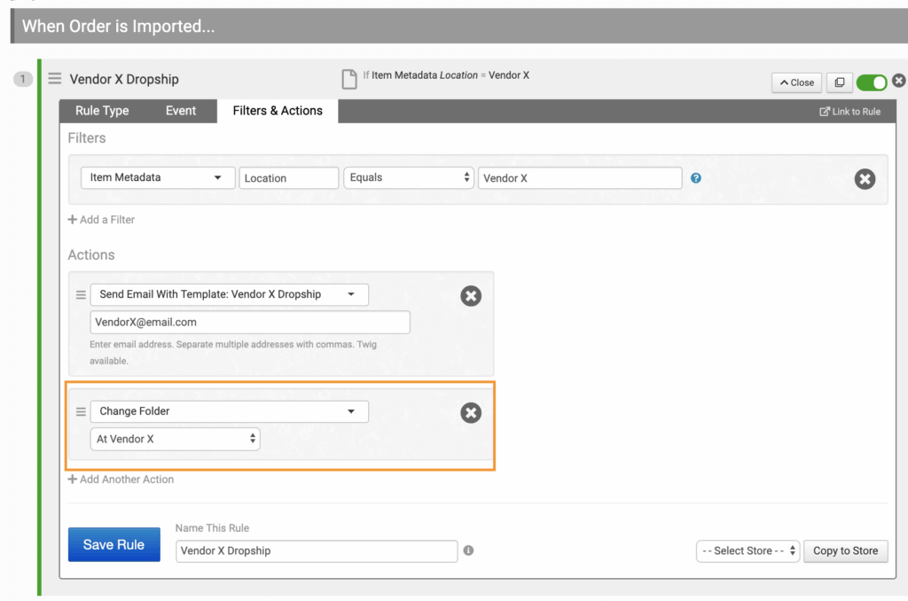 If using an integration, check to see if you can change the folder when shipment is added. If that isn’t an option or you aren’t using an integration for some orders, you can set up a rule to move orders to the closed folder when shipment is added: