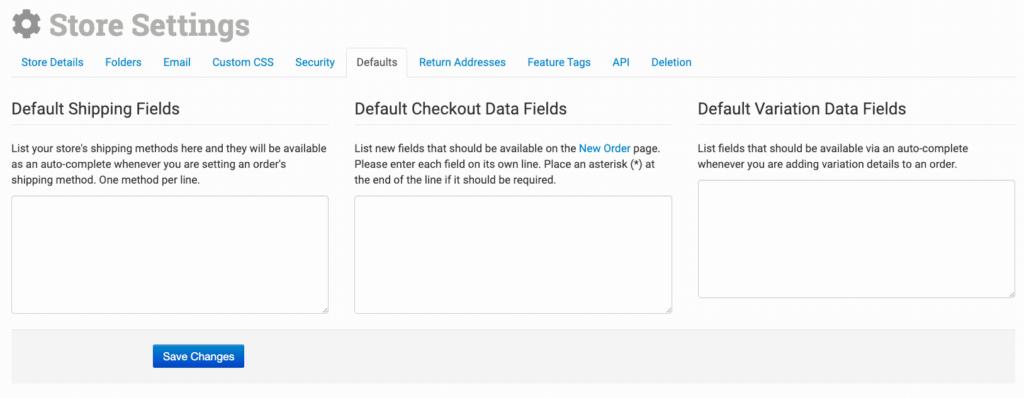 Default Shipping Fields