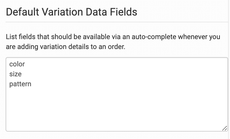 Add variation names, one per line, to have them autofill when adding variations to an item in an order.