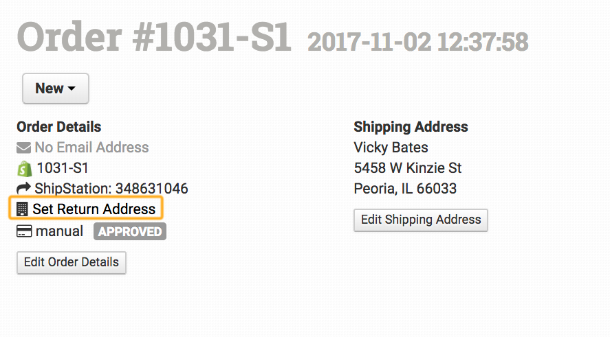 When at least one return address is saved, you will see an additional link on your Order Details page, Set Return Address: