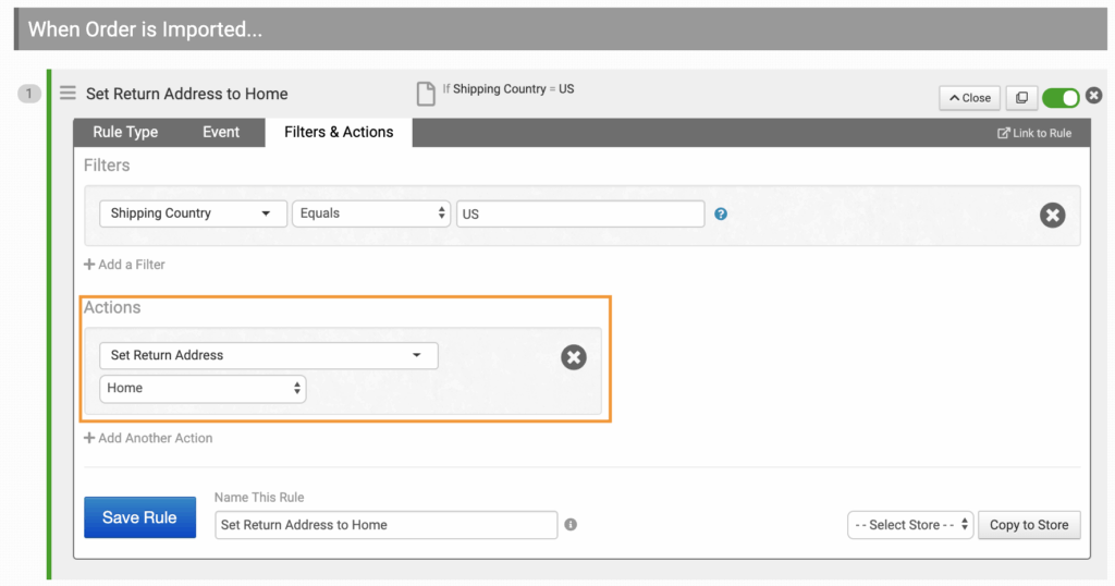 You can also set the return address automatically with a rule based on any filters you specify: