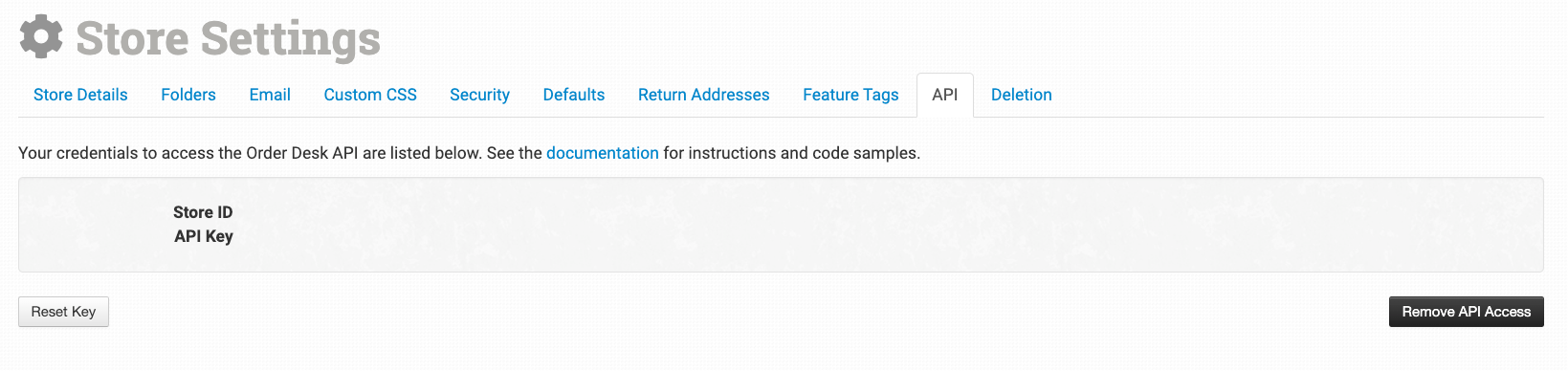 Your Store ID and API Key will be displayed on this page.